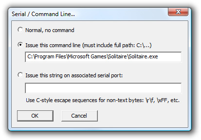 External programs can be invoked at scripted times, for example to execute special tasks or take data. In the example shown below we will start the Solitaire game.
